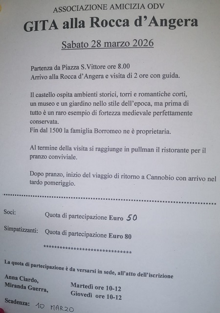 “Amicizia”, al Palazzo Mandamentale in via A. Giovanola,25. Cannobio