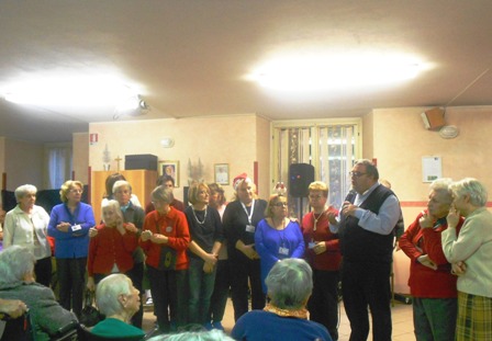 visita all' Opera Pia, allietando gli ospiti con tre farse e con